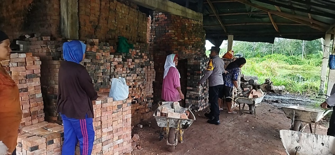 BENGKALIS-Personil Polsek Bantan yang di pimpinan Kapolsek Bantan AKP KASMANDAR SUBEKTI menyambangi ibu-ibu yang sedang bekerja membuat batubata di desa Berancah Kecamatan Bantan.