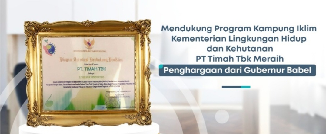 BANGKA BARAT- Dalam momentum Hari Ulang Tahun ke 23 Provinsi Kepulauan Bangka Belitung, PT Timah Tbk meraih penghargaan dari Pemerintah Provinsi Kepulauan Bangka Belitung sebagai pendukung program kampung iklim yang digalakkan Kementerian Lingkungan Hidup dan Kehutanan.