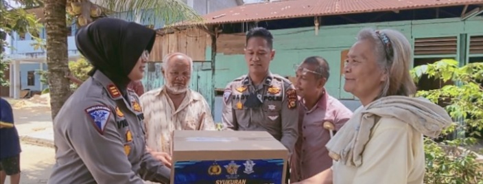 Bantuan paket sembako Bakti Sosial dibagikan Kepada Panti Jompo dan Panti Asuhan, korban Laka Lantas, tukang ojek dan penarik becak, supir angkot serta pemulung dan Petugas Kebersihan turut mendapat bantuan paket sembako dari Satlantas Polres Siak.