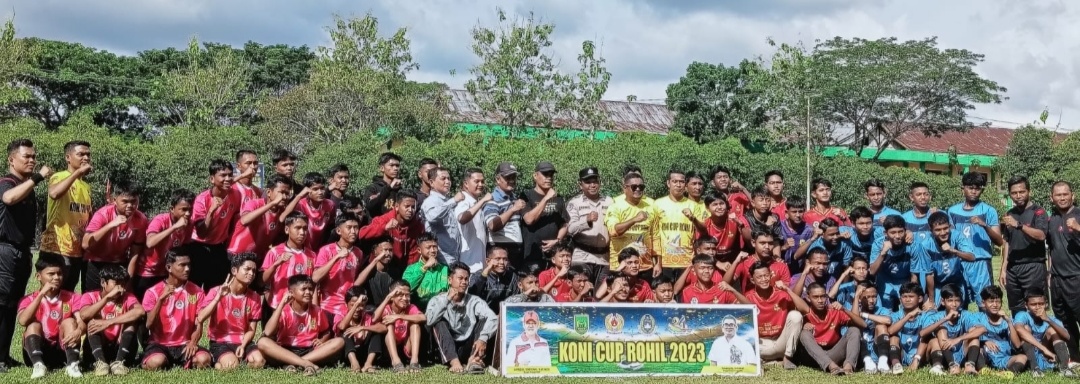ROHIL- Ketua umum Komite Olahraga Nasional Indonesia (KONI) Kabupaten Rohil Samsuri SH, M.Si secara resmi membuka turnamen sepak bola U 18 piala KONI Cup 2023 se-Kabupaten Rohil di lapangan bola kaki Pesantren Al-Majdiyyah, Sabtu (21/10/2023).
