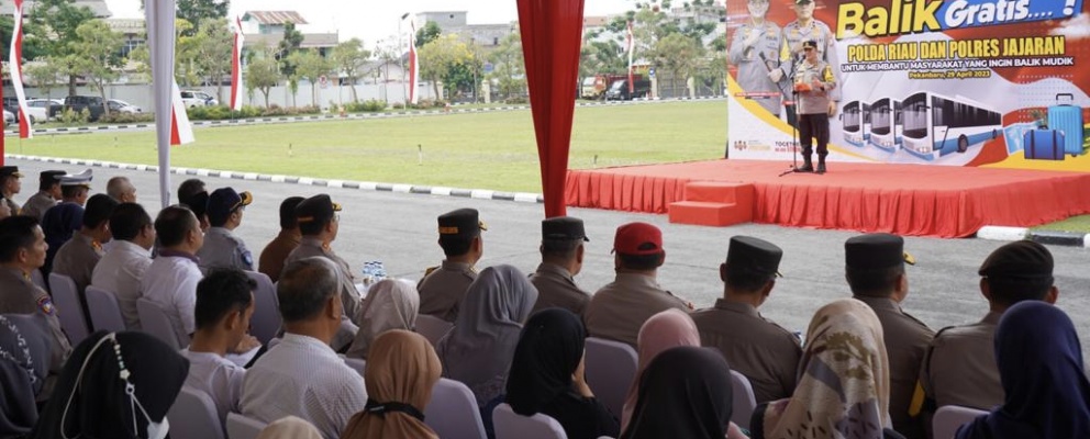 PEKANBARU-Kapolda Riau Irjen Pol Mohammad Iqbal secara ceremony melepas keberangkatan para pemudik untuk kembali ke daerah asalnya. Pelepasan digelar di Mapolda Riau, Sabtu 29 April 2023 pagi. Mudik balik ini diberikan gratis oleh kepolisian.
