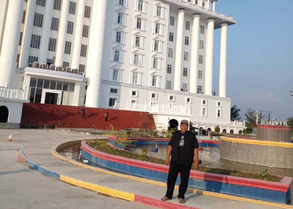 ROHIL- Pakar Lingkungan Hidup Dr. Elviriadi Kagumi Panorama Indah Kantor Bupati Rohil yang berada di Batu Enam Kecamatan Bangko Bagan Siapiapi Kabupaten Rohil Provinsi Riau, Kamis (11/8/22) Sore.