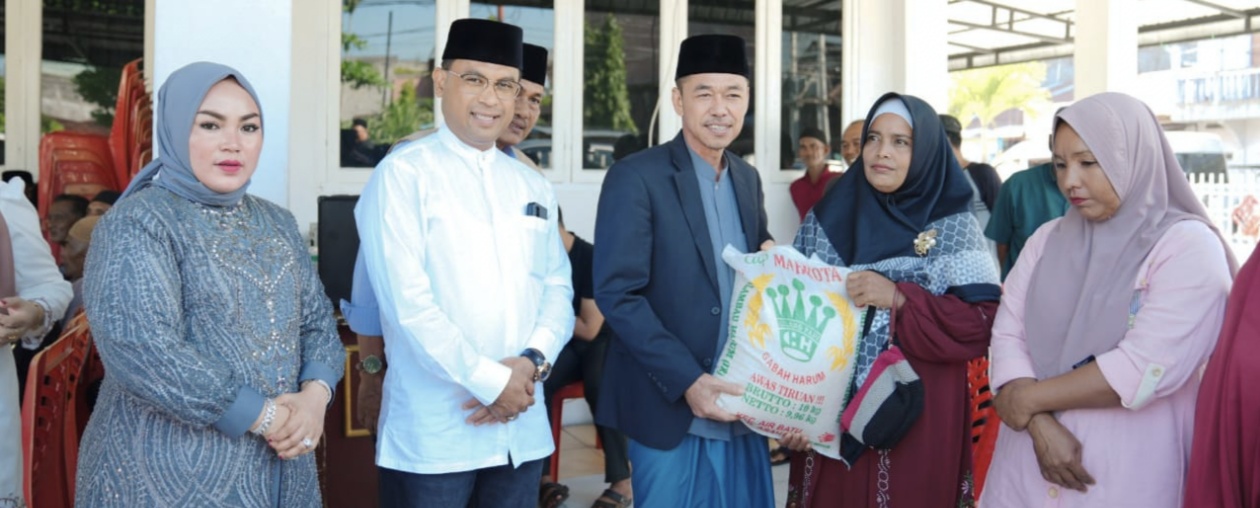 ROHIL- Pada momen perayaan Idul Adha 1444 Hijriyah tahun 2023, Bupati Rokan Hilir (Rohil) Afrizal Sintong SIP bagikan ratusan paket Sembako yang diperuntukan bagi masyarakat Bagansiapiapi yang berprofesi sebagai tukang becak, gerobak dan wartawan, Kamis (29/6/2023).