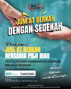 PEKAN BARU, Riauintegritas – Pengurus Daerah Persatuan Disc Jockey Indonesia (Pengda PDJI) Riau bersama Kordinator Wilayah (Korwil) Pekanbaru, Korwil Bengkalis dan Korwil Dumai menggelar kegiatan jumat berkah.