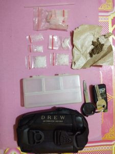 engejaran terhadap laki-laki tersebut dan berhasil ditangkap dan membawanya ketempat semula dimana sepeda motornya ditinggalkan untuk dilakukan penggeledahan badan dan penggeledahan kendaraan dan dari hasil penggeledahan sepeda motor Tim Opsnal menemukan 1 (satu) buah dompet warna hitam yang didalamnya berisikan 1 (satu) buah kotak warna putih yang berisikan 5 (lima) paket pelastik bening berisikan butira kristal diduga Narkotika jenis sabu, 1 (satu) paket kecil diduga daun ganja kering, 2 (dua) buah pipet pelastik, 15 (lima belas) pelastik bening kosong, set