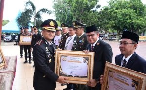 Dalam upacara ini Wakil Ketua DPRD juga menerima piagam penghargaan dan apresiasi dari Kepala Kepolisian Resor Bengkalis atas dukungan kerjasama dan sinergitas menjaga Kamtibmas di wilayah hukum Polres Bengkalis.